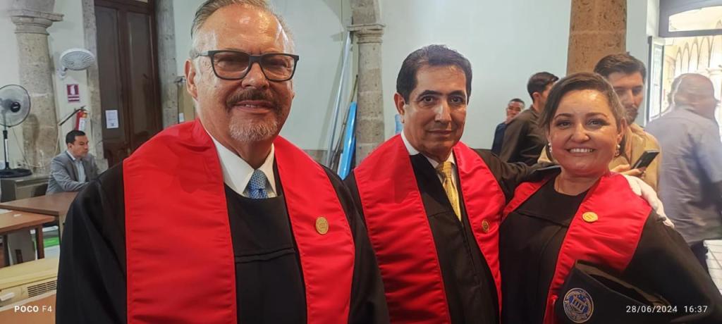 Presidiendo este acto solemne estuvieron, el doctor de doctores Salvador Pérez Gómez, rector del Claustro, el doctor César Octavio Sarabia Valdovinos, presidente del Consejo, en representación del doctor Daniel Espinoza Lijón, presidente del Supremo Tribunal de Justicia, el magistrado José Luis Álvarez Pulido; el padrino de la generación, el doctor Eric Rauda, los doctores y magistrados Esperanza Martínez Lara, de México; Adriana Orocu Chavarría, de Costa Rica, e Iván Patricio Saquicela Rodas, de Ecuador, así como los doctores Cinthia Iris Paola Torres, Dante Haro Reyes y Carlos Miguel Estrada Ramírez.