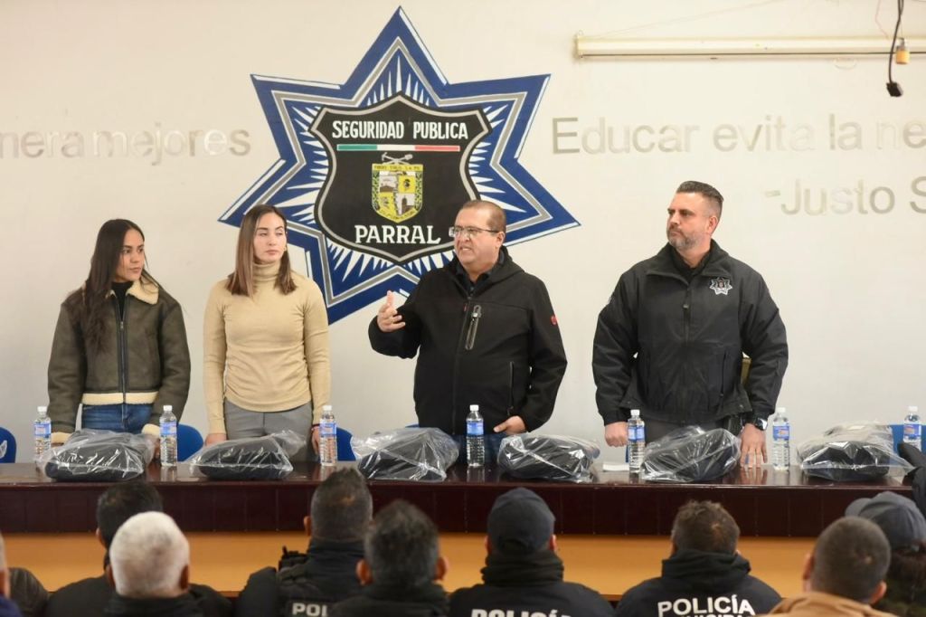 El presidente municipal Chava Calderón hizo entrega de 123 chamarras a elementos de la Dirección de Seguridad Pública Municipal (DSPM) como parte del compromiso de equipar a quienes con su espíritu de servicio se encargan de garantizar la seguridad de las y los parralenses, reafirmando su compromiso de seguir fortaleciendo las acciones con las que puedan realizar sus actividades.