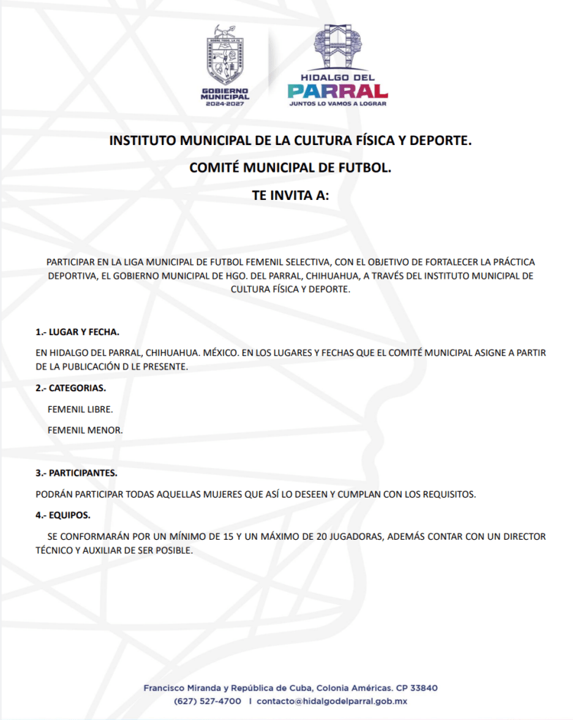 Convocatoria para Liga Municipal de Futbol Femenil Selectiva
