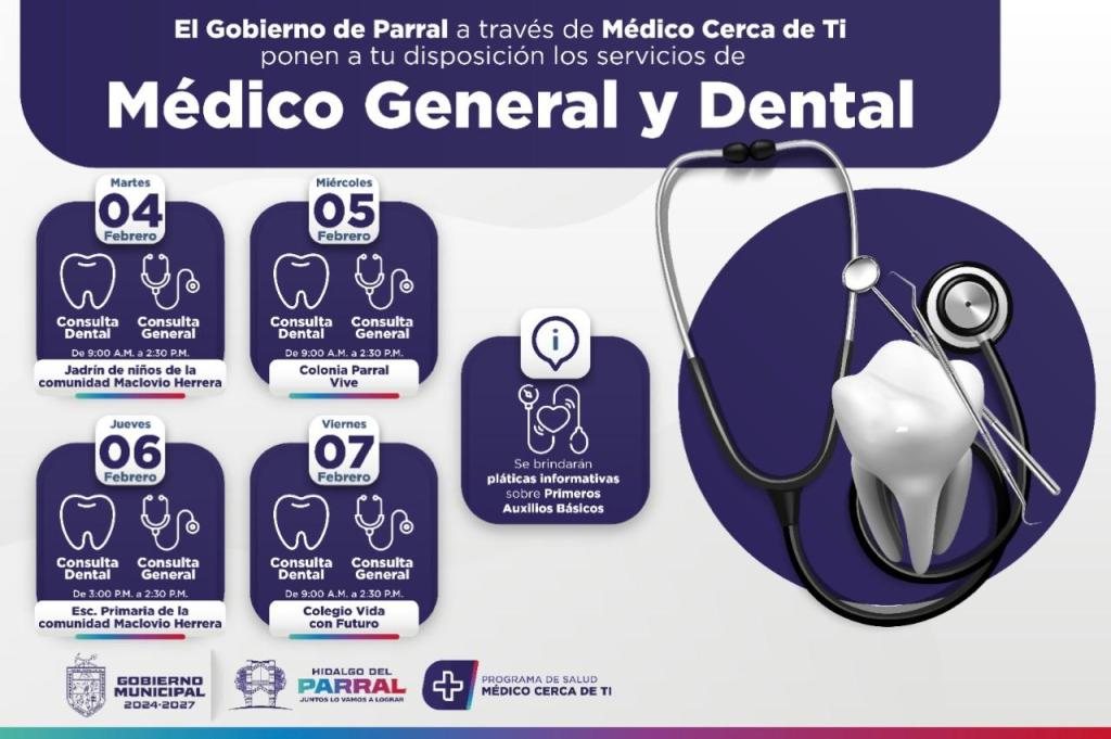 Para este miércoles 5 de febrero la Consulta General y Dental llegará a la colonia Parral Vive de 9:00 de la mañana a 2:30 de la tarde.