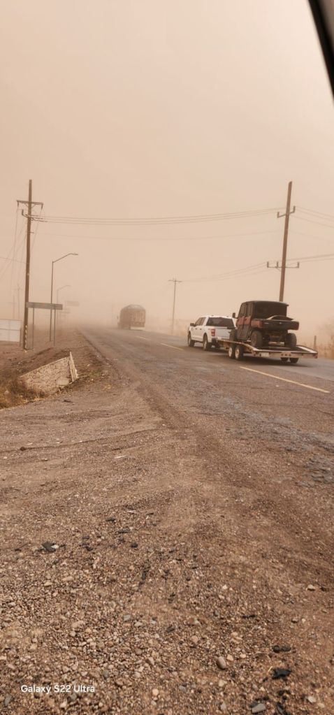 Adicionalmente, la CEPC dio a conocer que la carretera Chihuahua-Delicias presenta visibilidad reducida. En algunas áreas de Ahumada, Janos y Juárez, se registran fuertes rachas de viento.