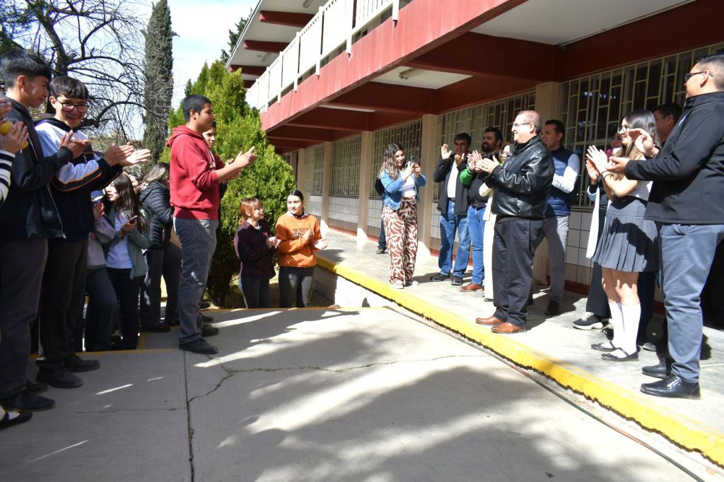 Acompañado por su esposa, Nora Carrillo y el director de la institución, Jaime Michael Rivera, así como un centenar de alumnos y alumnas, el Presidente Municipal de Parral, recorrió el área a beneficiar, en un proyecto a realizar en varias etapas hasta ser concluído.