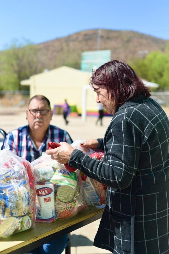 Los paquetes distribuidos incluyeron productos esenciales como frijol, arroz, azúcar, café, leche, aceite, harina, pastas y verduras enlatadas, con lo que se busca apoyar la economía de los hogares y asegurar el acceso a una alimentación digna.