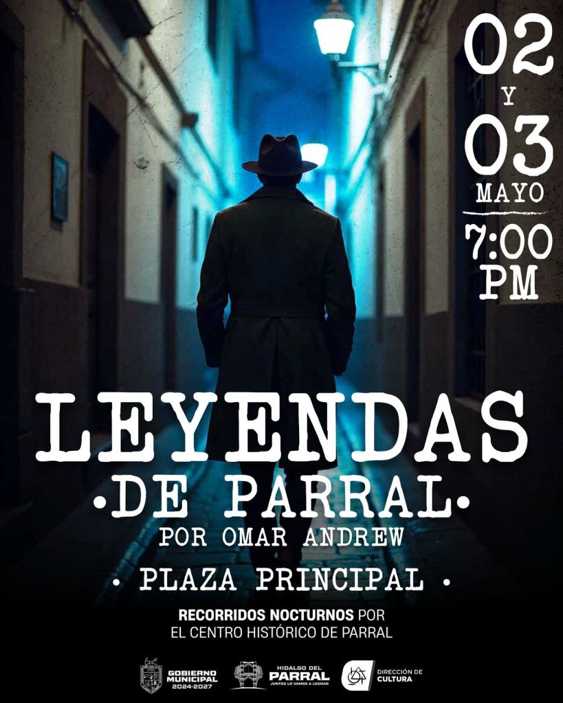 El Gobierno de Parral, que encabeza el alcalde Salvador Calderón, a través de la Dirección de Cultura, invita a la ciudadanía y visitantes a participar en los tradicionales recorridos nocturnos “Leyendas de Parral”, los días viernes 2 y sábado 3 de mayo a partir de las 7:00 de la tarde, en la Plaza Principal.