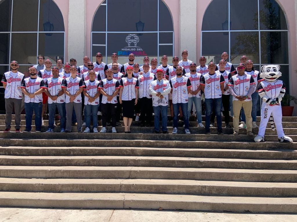 Seguidamente, los peloteros, Roberto Armenta, Miguel Hernández y Rafael Franco, fueron los peloteros, que recibieron las camisolas, mismas que son de color blanco con vivos en rojo y negro con el nombre en el pecho de Mineros; gris con vivos enrojo y negro con la leyenda en el pecho de Mineros y negra con rayas blancas y vivos en rojo y blanco con la leyenda en el pecho de Parral, así como las gorras en negro con visera roja y con la “P” en la frente y roja totalmente con la leyenda en la frente de Mineros.