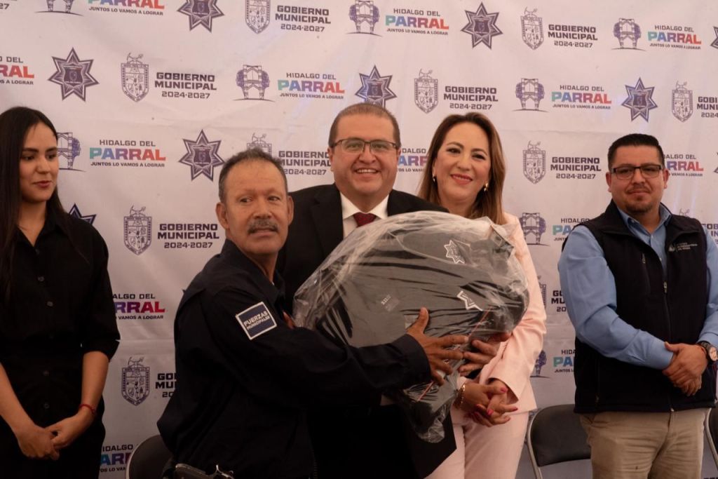 Con una inversión superior a los 3 millones de pesos, el Gobierno del Estado y el Gobierno Municipal de Parral llevaron a cabo la entrega de equipamiento táctico y un vehículo oficial a la Dirección de Seguridad Pública Municipal (DSPM), como parte de la estrategia para consolidar una corporación más eficiente, moderna y cercana a la ciudadanía.
