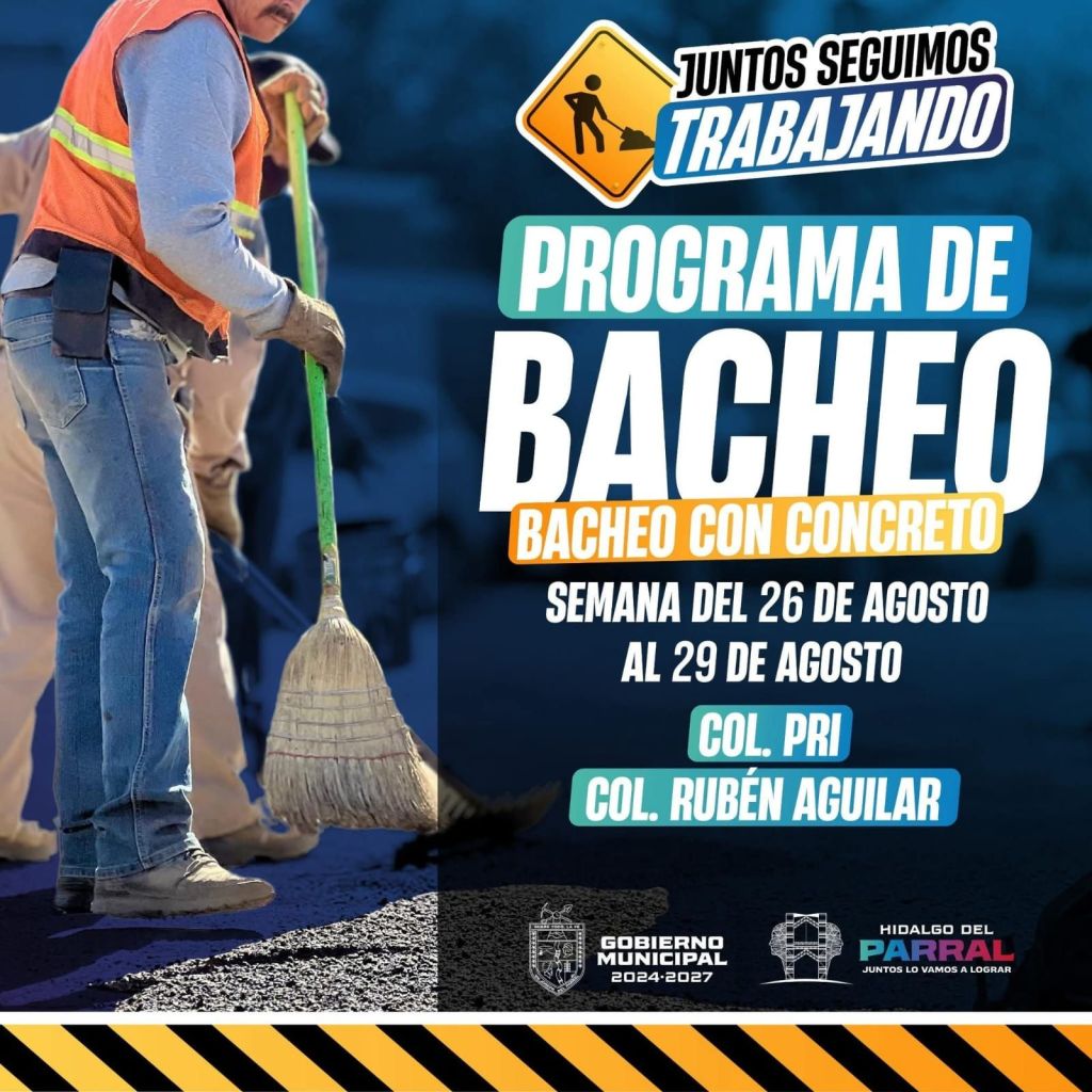 Del 26 al 29 de agosto, el Gobierno de Parral llevará a cabo un programa intensivo de bacheo con concreto hidráulico en distintas colonias, con el propósito de mejorar la seguridad y comodidad de quienes circulan diariamente por estas calles.