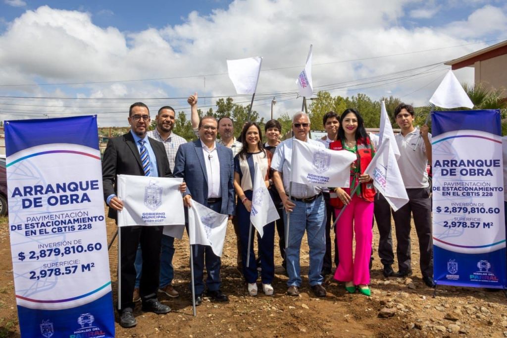 El presidente municipal Salvador Calderón dio el banderazo de inicio a la pavimentación del estacionamiento del CBTis 228, una obra ejecutada por la Dirección de Obras Públicas como parte del Presupuesto Participativo, que busca atender necesidades reales de la ciudadanía.
