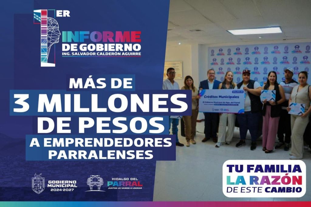En el marco del primer año de gobierno del alcalde Salvador Calderón, se destinaron más de 3 millones de pesos en créditos sin intereses para respaldar a microempresarios y emprendedores de Parral. Con esta acción, la administración municipal impulsa el autoempleo y abre nuevas oportunidades de desarrollo para quienes han decidido invertir su talento y esfuerzo en la Capital del Mundo.