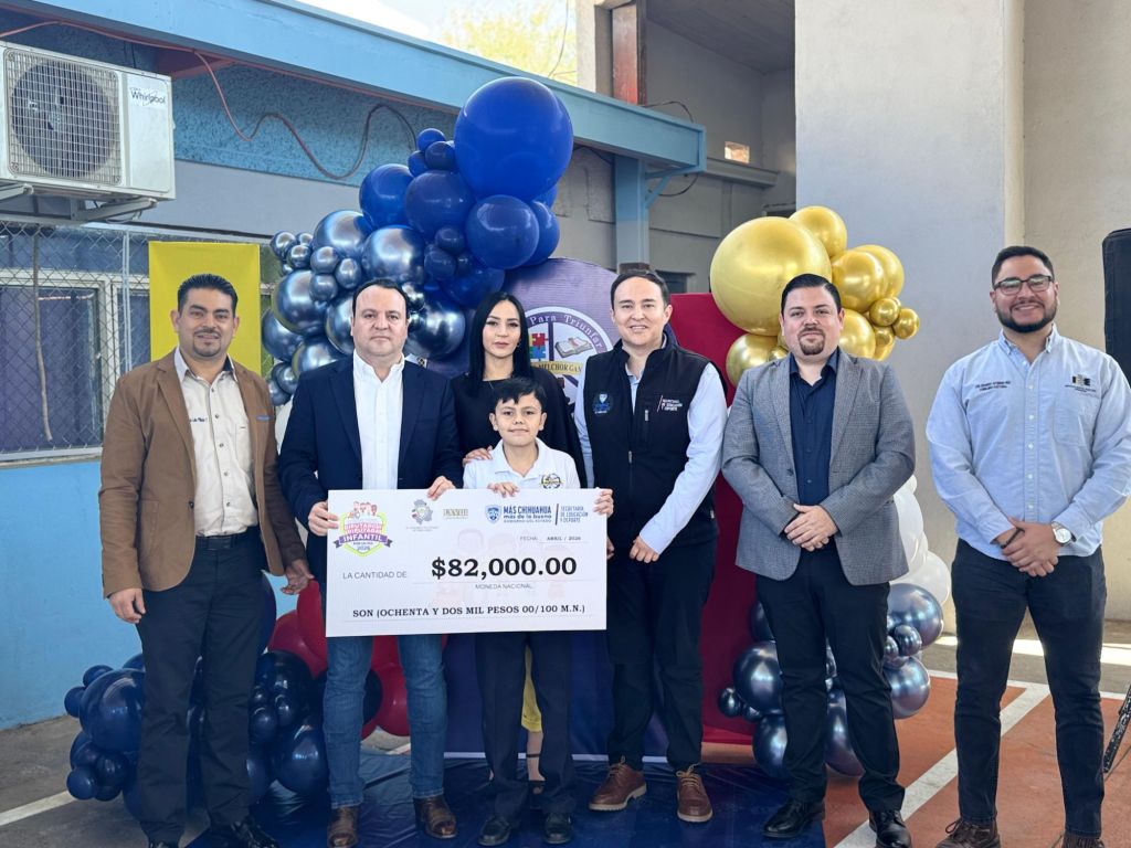 En este contexto, el diputado Guillermo “Memo” Ramírez, en su carácter de presidente del Congreso del Estado y representante del Distrito 21, hizo entrega de un cheque por la cantidad de 82,000 pesos, como parte de este programa de Diputado Infantil, recursos que serán destinados al mejoramiento de la institución educativa.